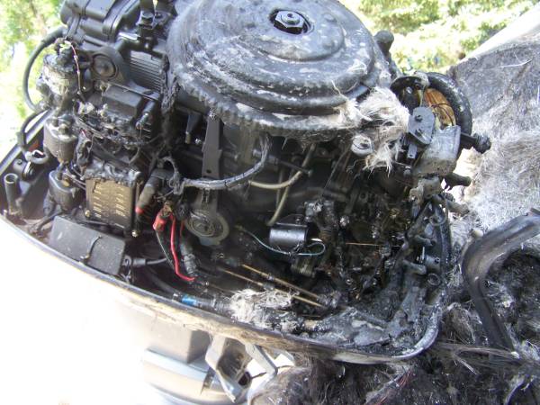 Boat started a fire in the cabin and burnt down the rest. The motor was in excellent running condition when it happened. It still has many good parts, basically mechanically still good. If you have a blown motor this motor could get you going again. BO