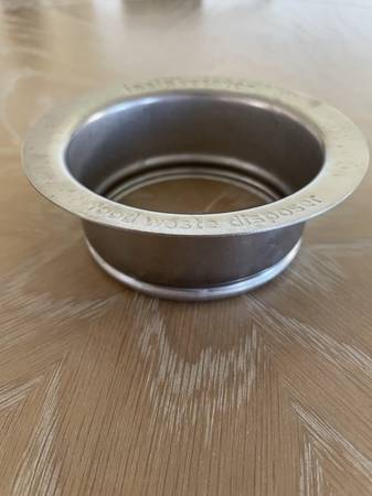 One FLG-SSB InSinkErator flange for kitchen sink Measuring 4.5-in by 1.75-in Brushed Stainless Steel finish (baffle not included) Never used This flange came with the InSinkErator garbage disposal...