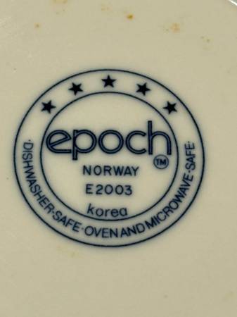 12 coffee cups and 12 saucers, a creamer amd sugar bowl. This is the Norway pattern. Epoch China Excellent condition.
