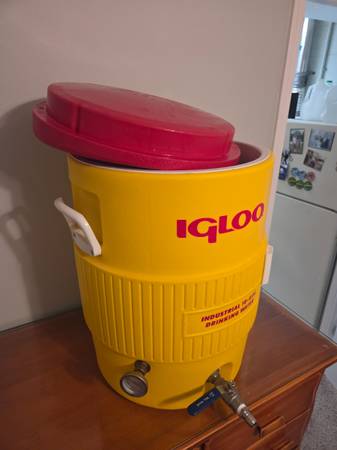 This insulated 10-gallon Igloo mash tun is designed for precise temperature control during brewing. Includes a stainless steel false bottom, ball valve, and built-in thermometer—everything you need for an efficient mash process.