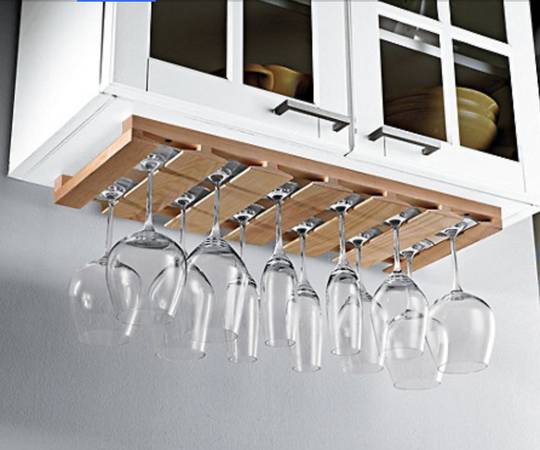 Solid oak wine glass/other stemware holder. Attaches under a cabinet or other surface. $10 cash
