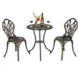 VINTAGE STYLE: Shaped by beautiful Art Nouveau influences, our bistro set offers a stunning vintage look for your outdoor space. This set features intricately designed tulips and elegant curves that emphasizes individuality and style, making this a unique piece for any home.