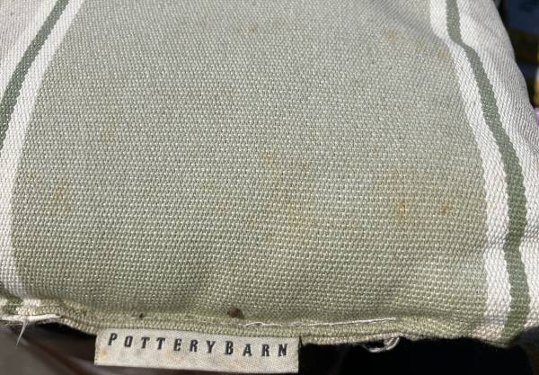 Used, but with lots of life left in them. 18" wide in front, 16" wide in back about 2-3" thick. Reversable, so they can all be the same, if you wish. Could be cleaned up a bit, if you choose so.