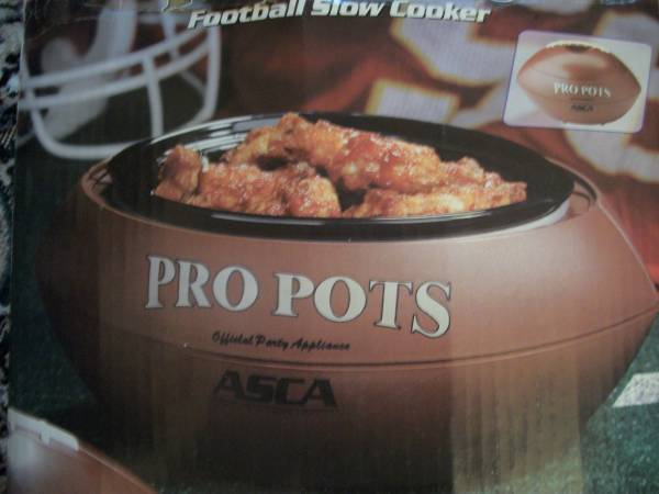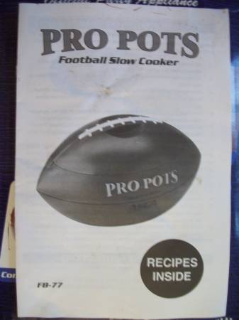 Unique football-shaped slow cooker with 3 settings--off, warm, and cook --- OWNERS MANUAL INCLUDED ---