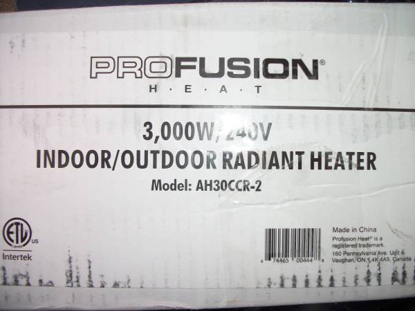 Profusion Heat Indoor/Patio Radiant Heater -- 3,000 Watt, 240 Volt, 10,234 BTU, Model# AH30CCR