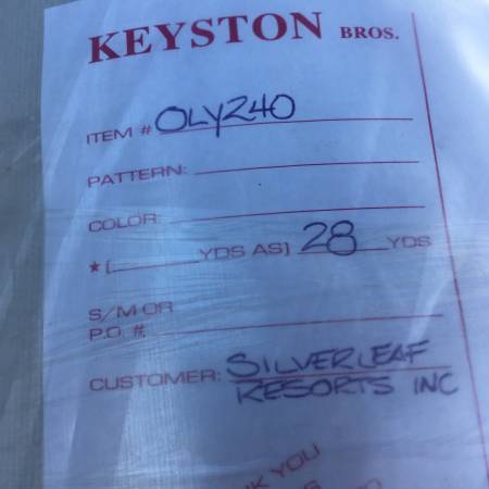 --- 2 BRAND NEW ROLLS AVAILBLE. 55" wide X 28 YARDS long. $295 EACH, WAY LESS THAN HALF THE ONLINE PRICE OF $29.49PER YARD PLUS TAX ($826+TAX) --- I CAN SELL YARDS FOR $20 PER, 6 YARD MINIMUM ---