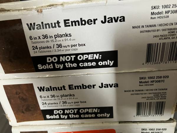 Walnut Ember Java 6 in. x 36 in. Vinyl Peel and Stick Vinyl Plank (36 sq. ft. / case) 18 NEW available, cases.