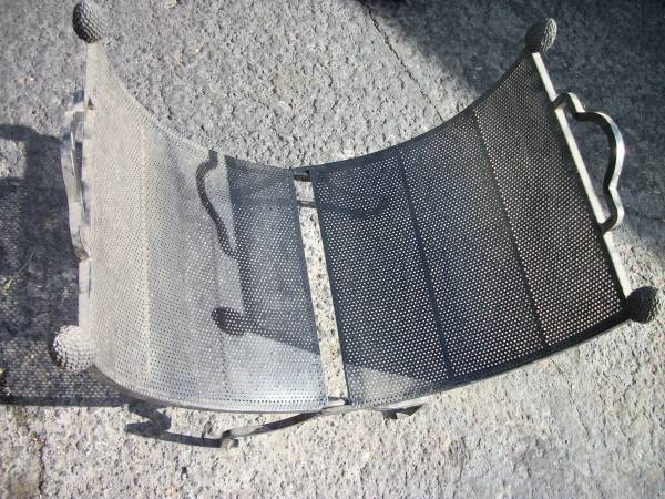 Item folds and has another cloth/leather firewood carrier that fits into the black wrought iron holder. Cabin decor. Open the holder is 24" across, 20" tall and 17" wide. --- DUSTY FROM STORAGE ---
