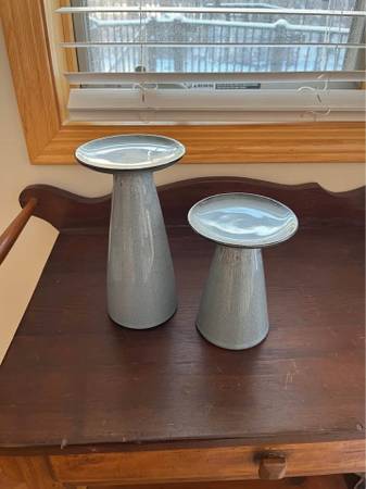 Blue Ceramic Pillar Candle Holders, Set of two for $10 total. Originally purchased from Hobby Lobby. Measurements are approximately 8.5” H x 4.5” W & 6” H x 4.5” W. Non-smoking home. FCFS, must...