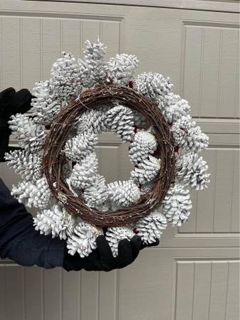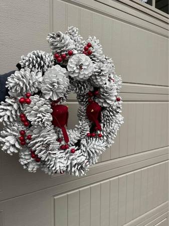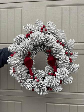 Beautiful white pinecone with cardinals and berries Christmas wreath, $30.
