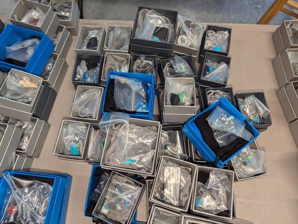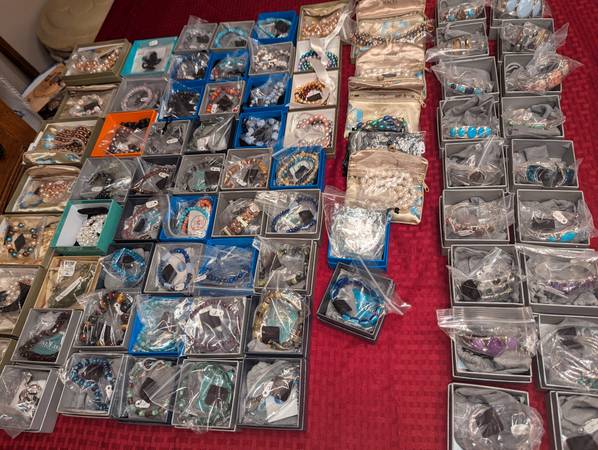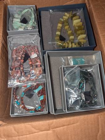 Hundreds of pieces of jewelry for sale. Designed by Jay King, Colette Pollack, and others. Sterling silver and semi-precious stones. Turquoise, amethyst, larimar, tiger's eye aquamarine, Jade, and more. We have silver necklaces, beaded necklaces pendants rings, bracelets, and earrings. NEW
