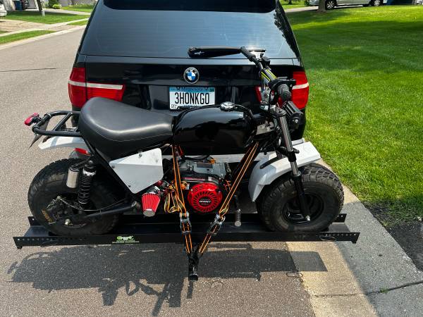 This is a very high quality hitch carrier. Was made local by company no longer around cost $1500+ new. This isn’t cheap china junk this can hold a full size bike or smaller bikes motorcycles and dirt bikes anything. It’s fully adjustable and has mounting points. Fits 2” hitch. Pick up in St Michael minnesota