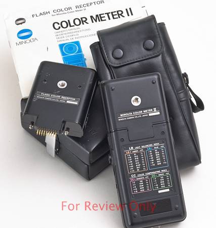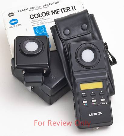 Minolta Color meter II with ambient and flash head attachment. Includes manuals and case as shown. All like new. Runs off one 9v battery. Just dropped to $100 cash or PayPal. Pickup in Watertown or...