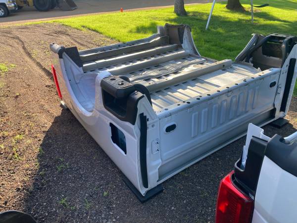 New 2025 Ford F 250/350 8'long and 6'10"short take off boxes . White , With tail lights and tail gates , 8' comes with a black bumper for $1400 And the short box comes with a chrome bumper . for $2750 . For more info please call Kevin at 612 three two eight 8509 Thanks