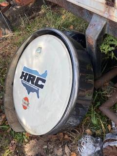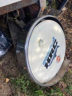 HRC SPARE TIRE COVER FOR RV FITS 215 X 85 X 16 TIRE BUT MAY FIT OTHERS IT APPEARS IN NICE SHAPE WITH NO DEEP SCRATCHES OR DENTS AND THE LATCH IS IN GOOD CONDITION