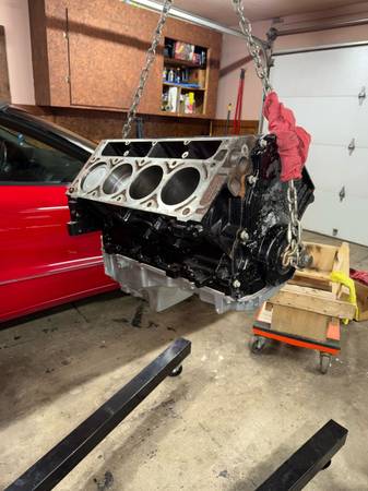 Gen 3 cast iron 5.3 with new rings, new rod and main bearings, high volume oil pump, LS2 timing chain set, Holley street oil pan-assembled to this point.
