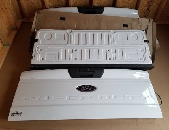 2023 Ford F250 F350 New Take off NTO -Aluminum tailgate and support straps, black handle latch with camera hole, back up camera provisions, camera and harness removed . NO STEP STYLE 2023-2024