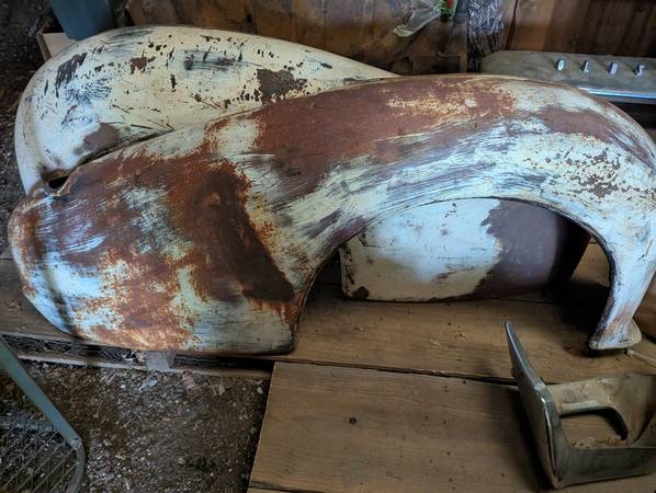 Selling as a lot. Doors, rear fenders, rear jump seats, horns, headlights, bezels, radiators, splash shields, upper front nose. I believe they are from the 1937 F37