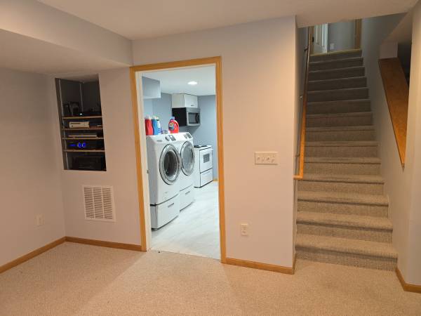 One room for rent November 15, 2025 in the quiet, Clover Ridge neighborhood of Chaska. A room with privacy on the lower level of the house with GREAT amenities and approx.. 3,000 sq ft of additional shared living space. Shared use of multiple living-room/family-room, multiple Flat Screen TV's with Premium Services Included, 2 kitchens and home theater area. Shared use of full bathroom; only shared when other housemates are using the laundry room and/or theater room. Additional storage space available inside the home. There are numerous community walking trails, parks, easy bus route access just two blocks away and convenient 212 Freeway access. Street parking available next to the house. Share home with Senior Male who lives on main level (travels for work), two Single Females on the 2nd level of the house. Ideally looking for employed professional. Contact Steve for additional information show contact info