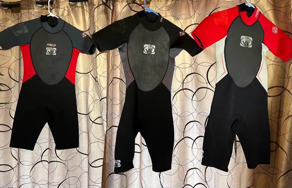 3 - Body Glove wetsuits. Size 10, 12, and 14. $15 each