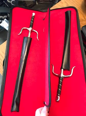 Youth "Do Jo" martial arts training equipment! Like New: A pair of Sai with case. A pair of competition Kama with case. 3 various sized tapered Bo Staff. 1 Bokken at 33" overall length. Moderate...