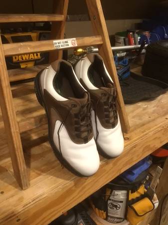 These shoes are basically new...worn 1 time. No longer golf - don't have the time.