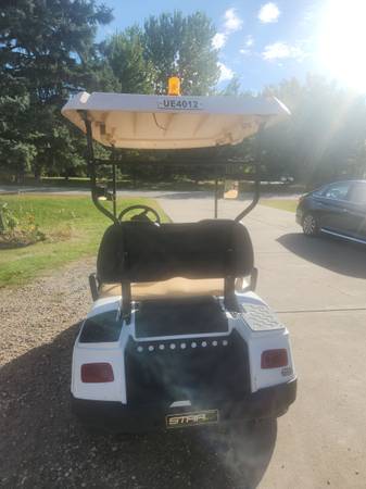 2015 Star 36volt electric golf cart. Has mirrors,turn signals and horn. Batteries getting weak. Lasts 20-25 minutes of driving. Charger included. Pickup in Monticello.
