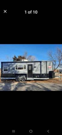 2022 ice castle 22ft fish house with slide out. House was custom ordered with lots of extras which include hole sleeves, light up rattle reels, wheel well skirts, On demand hot water heater, ceiling fan and bath exhaust fan, extra 110v outlets, USB ports and lighting. Has berkon galvanized frame with hydraulics. House is like brand new. Used very little. Has 3years left on bumper to bumper warranty, Reason for selling is retired and winter in Arizona. Any questions you can email me. 35k is firm
