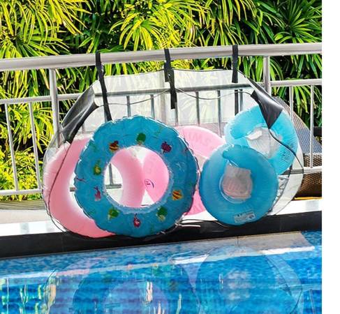 Beach Toy Bag, Hanging Storage Bag for The Pool, Swimming Pool, Storage Bag, Foldable Large Capacity Hanging Beach Toy Bag, Pool Mesh Organizer Bag for Floats, Balls, Inflatable Toys