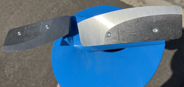 Strike Master Mora 2-Piece Hand Auger, Lightweight Powder Blue Ice Auger with High-Performance Steel Blades and Adjustable Handle
