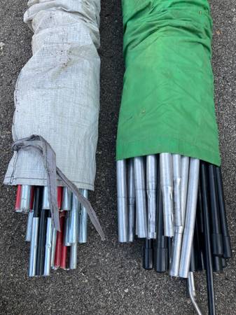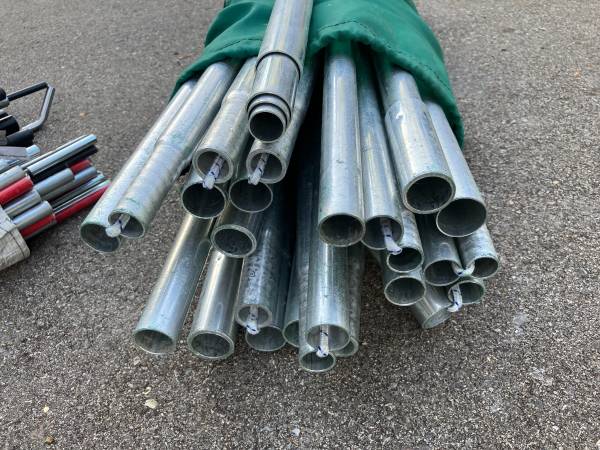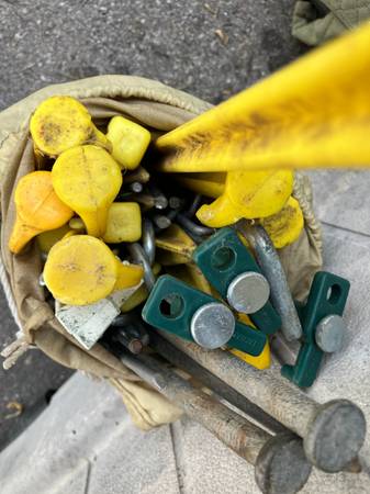 $10 each for the poles. $25 for the stakes (many kinds).