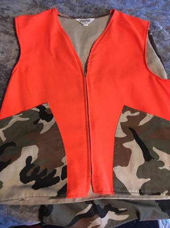 Made in USA See photos. Must have been owned by a bad shot, no blood or feathers in the back pocket. Shell holders in the pockets. I also have a brand new blaze orange baseball style cap for $15 if...
