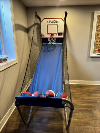 Priced to sell! I have a lightly used, fully functional, and clean, Pop-A-Shot Home Dual Shot arcade sale basketball game for sale. Perfect for family game nights, parties, or sharpening your free throw skills. Built with a sturdy steel frame and commercial-grade backboard — this unit is made to last. Comes with the original manual and from a smoke-free home.