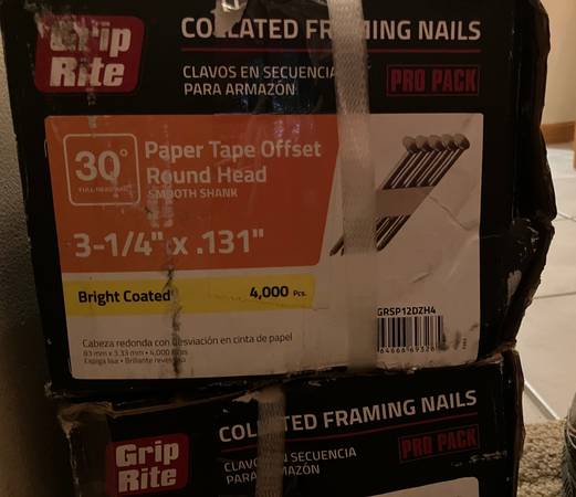 Box of 4000 Retails for $125 a box 3-1/4 in. x 0.131 in. wide head nails used for framing Compatible with most 30° paper tape pneumatic nailers Made from high strength steel featuring paper collating