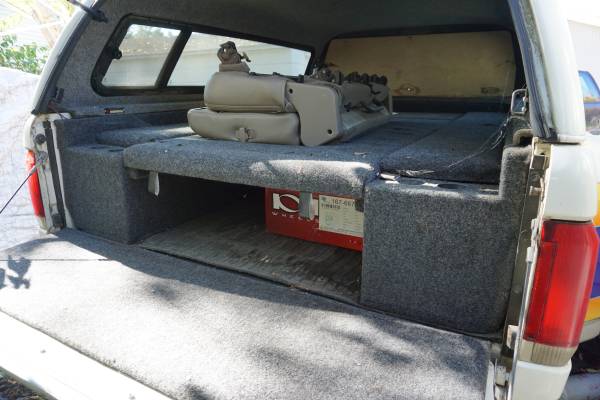 Selling for a friend. Excellent condition rust free box with topper, tailgate, and tail lights. The tailgate does have a spot of surface rust in one spot on the inside, see photos. The box is sitting on a custom air ride trailer with 16" aluminum mags and will go with the box for an extra $800. Prior owner built this to haul dj equipment so it does some type of insulated storage, also in the photos. Email me if you want more pic or have questions.