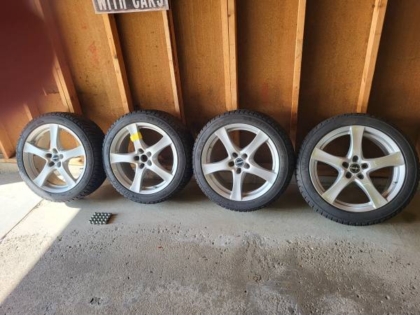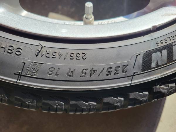 4 18" 235/45 R 18 Michelin X- Ice/Snow Tires 4,914 actual miles Driven November '24 to April '25 4 Borbet Type F rims with lug nuts 31,452 actual miles Missing one center cap Came off 2018 Tesla...
