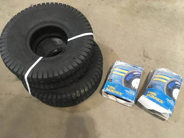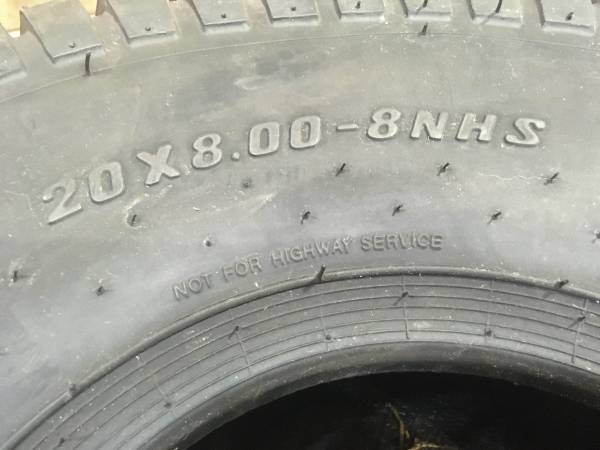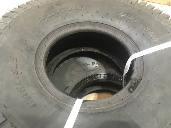 Brand New Carlisle Set of 2 Tires 20x8.00-8NHS Turf-Saver Lawn Mower Tires. Brand New never used. Also comes with 2 brand new inner tubes.