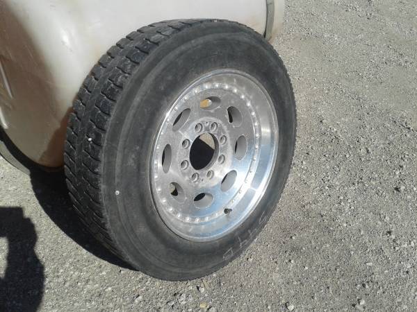 225/70R 19.5 Tire on 8 bolt aluminum rim with six and three quarters bolt measurement I think it's the same as a 170 mm $100 call 612 598 five five six two