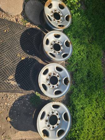 GM 8 lug 16" wheels / rims. No tires. We have 4 rims for sale. 40$ each total 160$