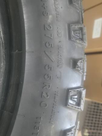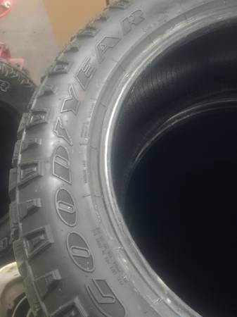 I have 4 275/55R20 Goodyear Duratrac tires that were taken off , They are at half Tread and wore straight. Tires were made in 2021 and they were on a Dodge 1500 truck. New these tires are 230.00 im...