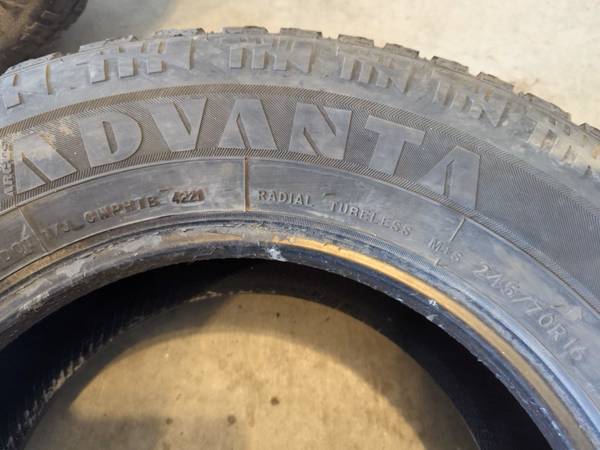I have a pair of Advanta ATX-750 245 70 16 with about half tread. Asking $65 cash for the pair. Texts are preferred but if you want to call just leave me a message. Please specify which tires you are looking at. No message no returned call. Thanks for looking!