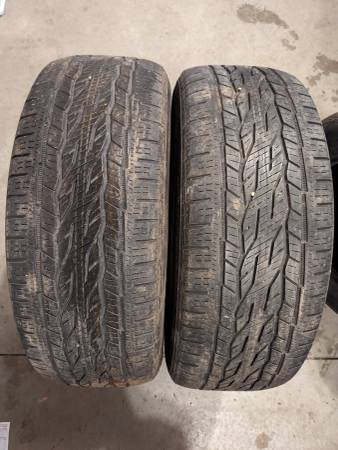 I have a pair of Continental crosscontact lx20 eco plus 255 55 20 with 60% tread. Asking $70 cash for the pair. Texts are preferred but if you want to call just leave a message. Please specify which tires you are looking at. No message no returned call. Thanks for looking.