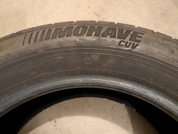 I have a pair of Mohave Crossover CUV 235 65 17 with 70% tread. Asking $75 cash for the pair. Texts are preferred but if you want to call just leave a message. Please specify which tires you are looking at. No message no returned call. Thanks for looking!