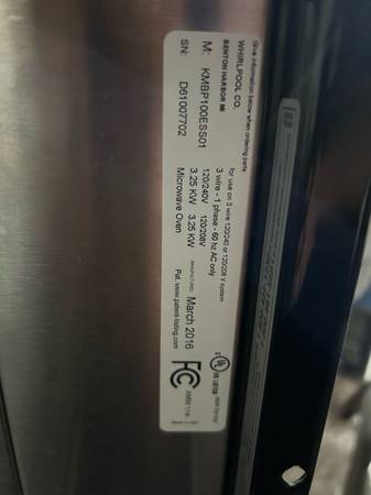 This is a kitchenAid 1.4 CF built-in microwave oven and runs onto 220 V It was barely used and is in excellent condition Comes with mounting brackets
