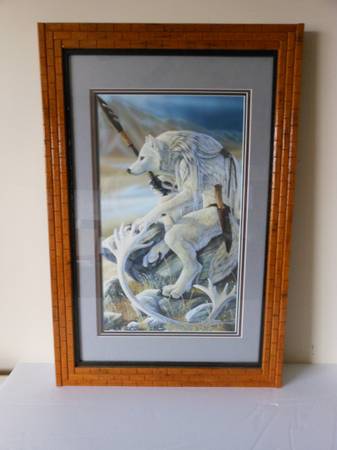 Artwork is titled "VANTAGE POINT" and it is a 2002 print numbered 135/200 and is hand signed by the artist. Framed size is 16 1/2" x 25". There are 3 mats on artwork-Ash, Art Brown, and T V Black. The tile size is 1/4" x 1/2" x 1" and are made from Cumare grown in Brazil South America. Trim is Wenge from Central Africa. All woods used are either reclaimed or from sustainable growth forests.