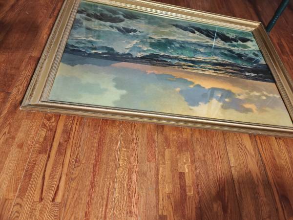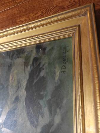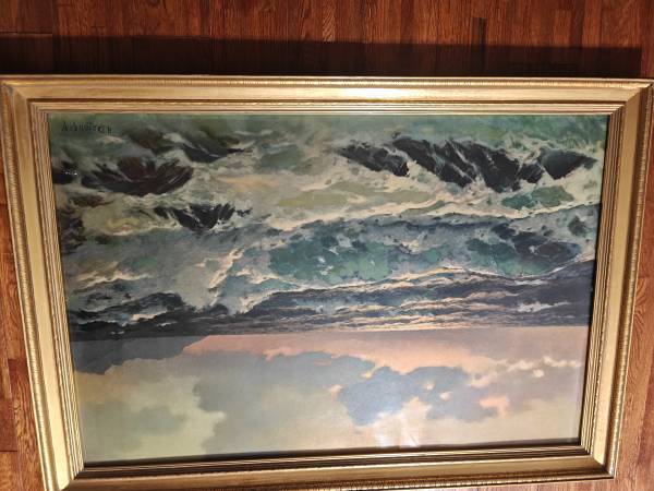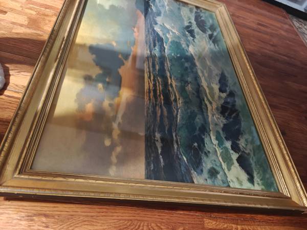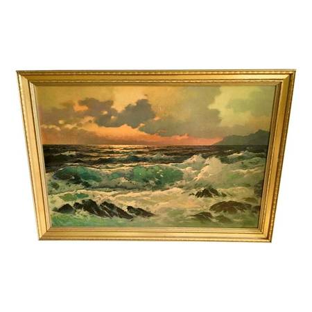 Alexander D’Zigurski Coastal Seascape Painting 5. Framed, frame has 1 area on corner that is damaged. Rest of it is good. Please see pictures. Sorry images are turned.