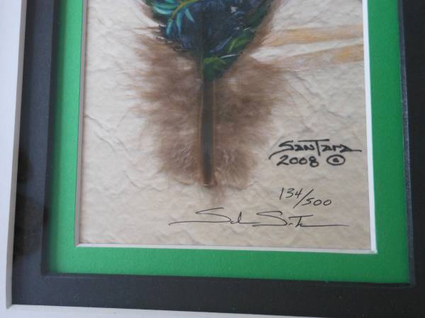 Artwork is titled "FAMILY DINNERS". It is a 2008 numbered print 134/500 and is signed. Frame size is 10" X 17". There are 3 mats on the artwork. The wood tiles are 1/4" X 1/2" X 1" and are made from Red Oak grown in Minnesota that are stained Honey. All woods used are either reclaimed or from sustainable growth forests.