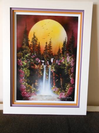 Artwork is done with spray can of paint as you watch. Tony Vegas pained this on and signed it. Artwork has 4 mats on it Honey Wheat, Sweet Tart, Saffron, and Pure White. Artwork is ready to be...