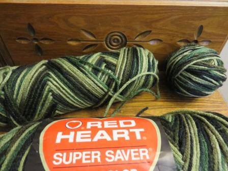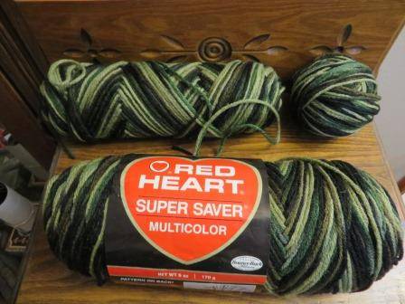 Red Heart Super Saver Multicolor Yarn 6 oz skein in wraps plus another that looks 3-4 oz and a ball of maybe 2 oz. (so at least 10 oz. total). All in color 0971 Camouflage. $8 for all