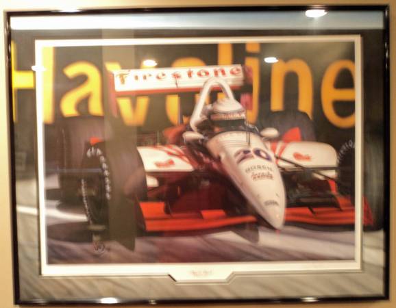 They're Back Firestone Scott Pruitt Auto Racing large 36 x 28 inch Framed Print by Bob Utne. Originally sold in my store at the Mall of America for over $400. Metal frame has some scuffs and is not perfect from being moved around over the years. Custom airbrush painted matte. Would like to find it a good home where someone can appreciate it, but am not willing to give it away. I can meet to show it at a SW Metro mall or Target at a lot of different times, I have a flexible schedule. Let me know if you have questions or would like to set up a time to see it.